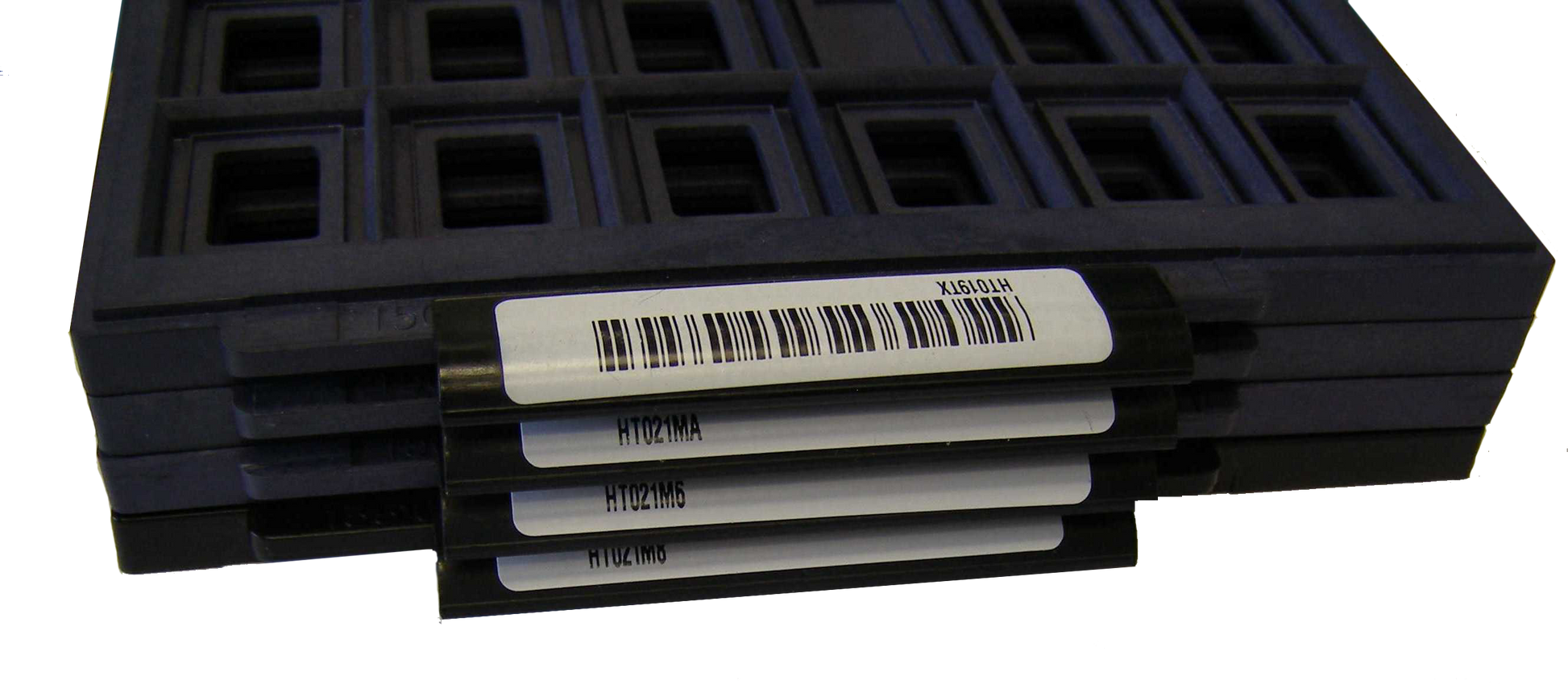 Les clips pour plateaux JEDEC sont des supports permettant le repérage des plateaux par une étiquette visible depuis la tranche.